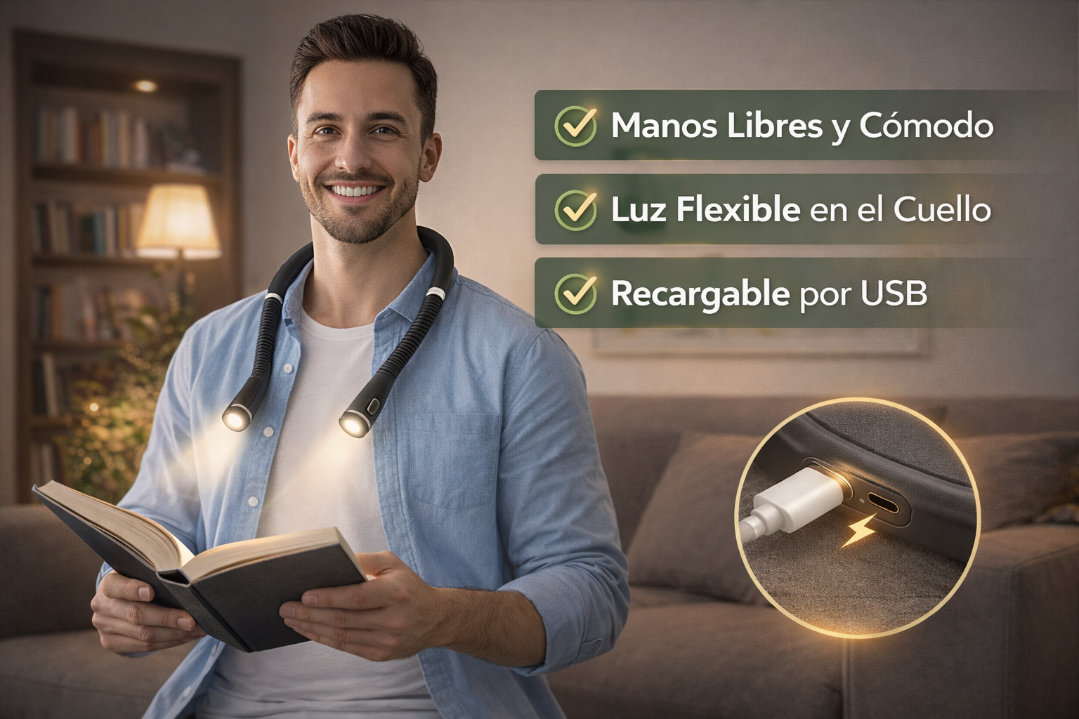 Es perfecto para leer, coser, tejer, estudiar, reparar objetos, acampar o cualquier actividad donde necesites luz sin usar las manos